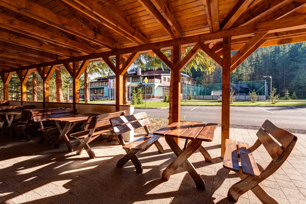 Zejména v letním období můžete strávit příjemný nezapomenutelný čas při šťavnaté grilování a tónech živé hudby v altánku před hotelem s kapacitou 70 míst. Jeho umístění v příjemném lesním prostředí přímo u potoku ho předurčuje pro venkovní aktivity s možností grilování, opékání a pod. Altán je ozvučený a v případě chladnějšího počasí jsou k dispozici plynové stojanové ohřívače.