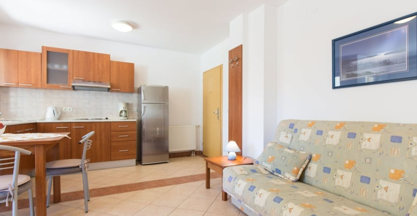 APARTMÁN pro 4 osoby: 2x ložnice s manželským lůžkem nebo dvěma oddělenými lůžky, obývací pokoj s kuchyňským koutem, koupelna/wc, balkon nebo terasa