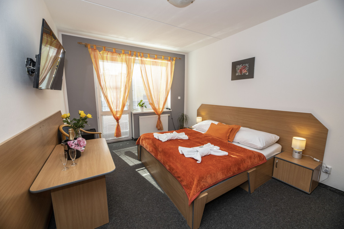 Všechny pokoje jsou vybaveny koupelnou se soc. zařízením a sprchovým koutem, dále minibarem, TV, chladničkou a internetovým připojením. Pokoje Delux se nacházejí v přízemí hotelu a jsou nově a komfortně zařízené.