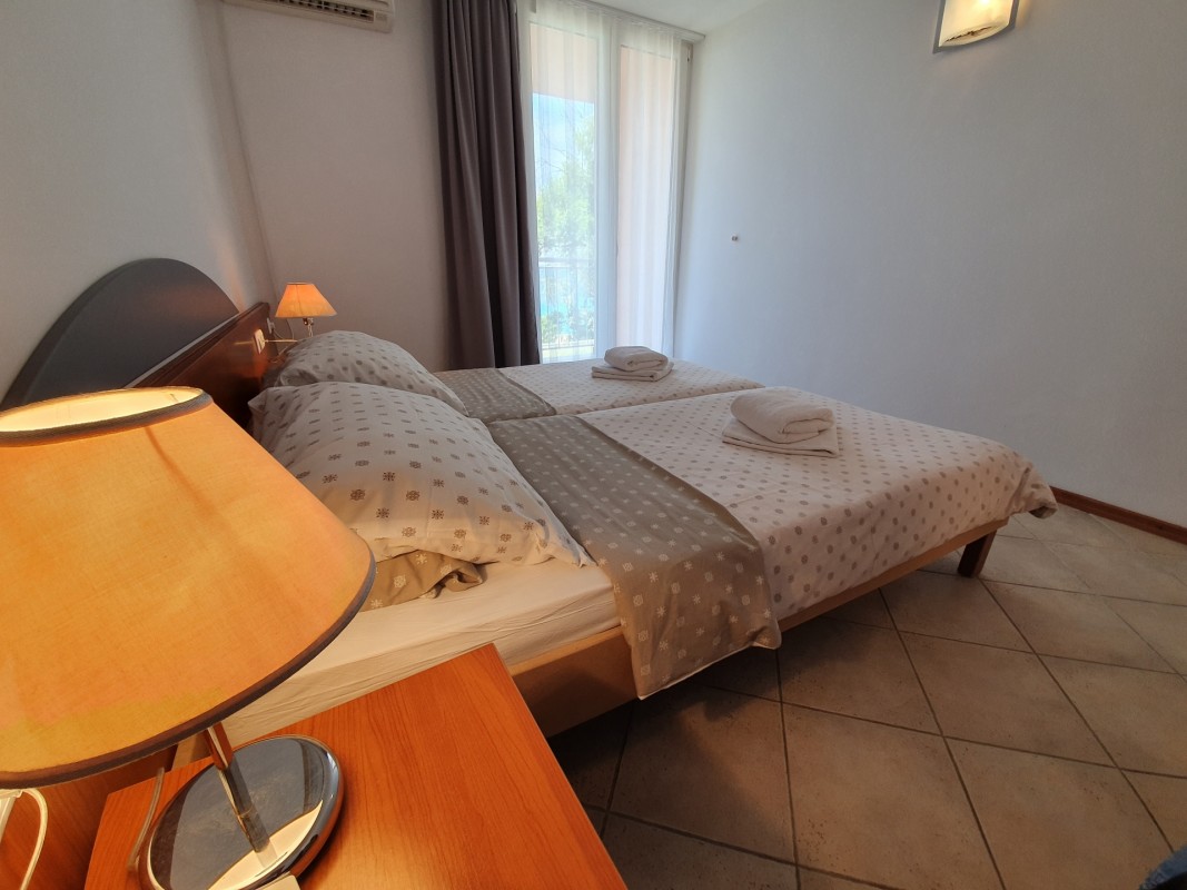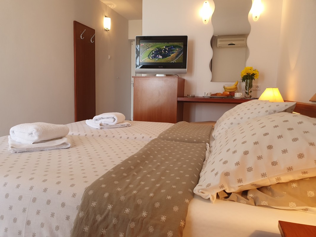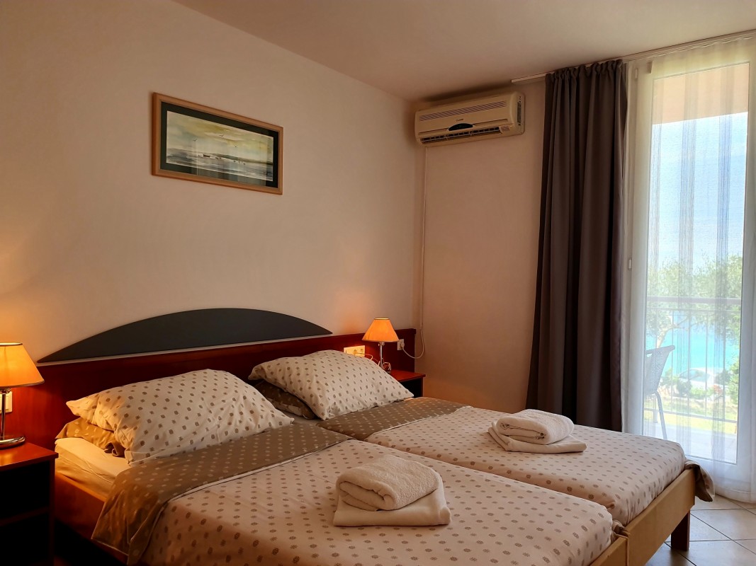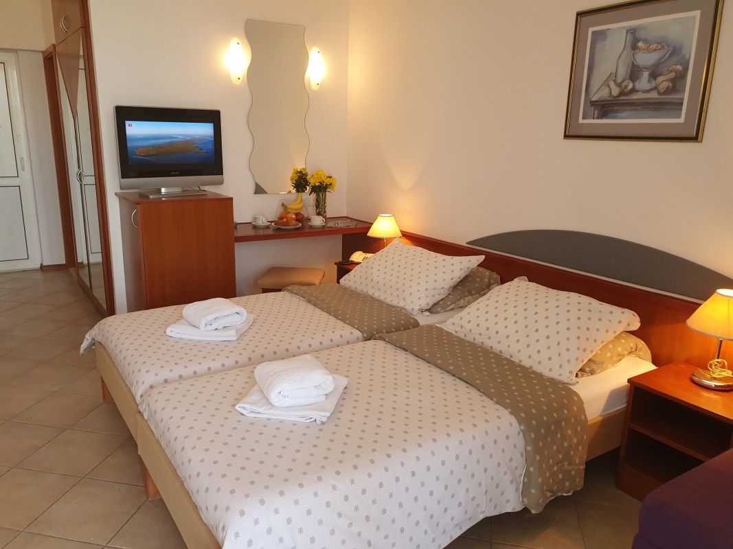 Stejně jako hotelová restaurace tak i ubytovací kapacity byly nově rekonstruované. Vybavené jsou moderním nábytkem, soc. zařízením, klimatizací, chladničkou, televizí se satelitem, fénem na vlasy a balkonem s pohledem na moře. Je zde také možnost připojení k internetu.