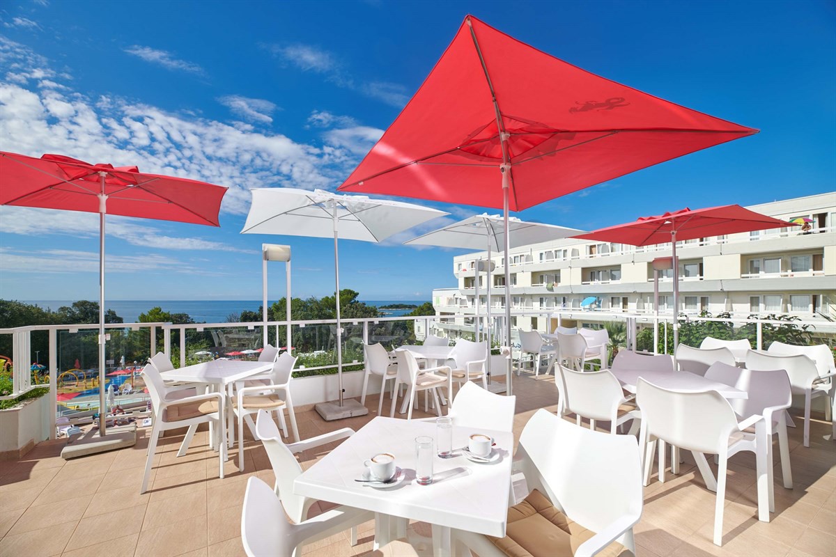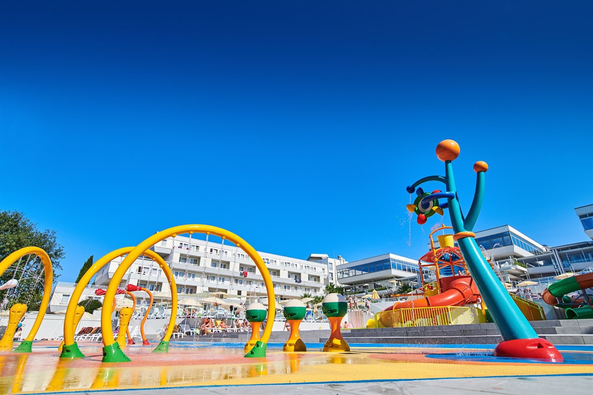 Na pláži je jedna větší restaurace, Beach bar a sportovní centrum Sport Laguna Delfin, které nabízí stolní tenis, střelbu, minigolf, vodní sporty. Hotel má venkovní bazén s mořskou vodou a terasou, kde ve večerním čase probíhají animační programy. Na této terase je snack bar. V roce 2018 byl vytvořen dětský bazénový komplex se skluzavkami a dalšími vodními atrakcemi. Pod bazénem je vybudováno dětské hřiště. K širšímu sportovnímu vyžití se nabízí velká řada řada dalších aktivit v rámci Zelene Laguny.