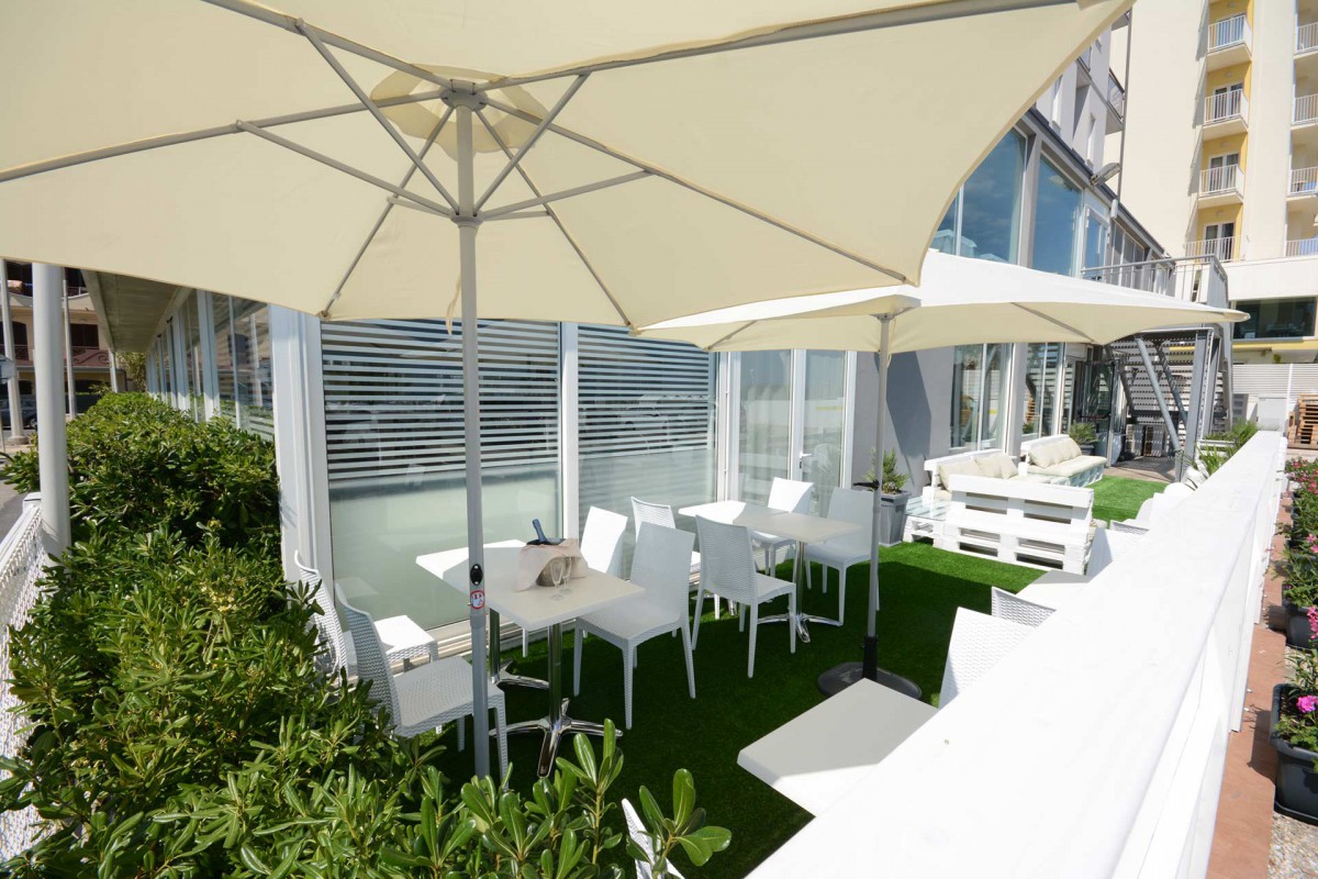 Hotel stojí přímo u pláže a promenády, nedaleko restaurací a nákupní zóny. Klientům je k dispozici recepce, Wi-Fi, klimatizované společné prostory, restaurace s panoramatickým výhledem, dětský koutek, bazén s vířivkou a solární terasou, půjčovna kol (za příplatek) a privátní parkoviště (omezená kapacita, za příplatek, nutno nahlásit při rezervaci). V průběhu letní sezóny jsou pořádány zábavné animační programy na pláži.