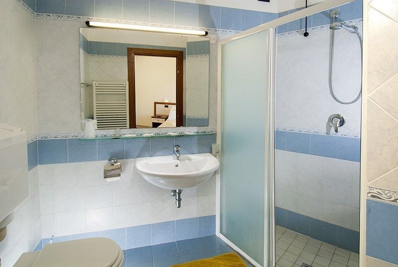 Dvoulůžkový pokoj standard směr park pro max. 4 osoby: manželské lůžko, přistýlky formou palandy, koupelna/wc, klimatizace za poplatek 13 EUR / noc, trezor, malá lednička, fén, TV/SAT, telefon