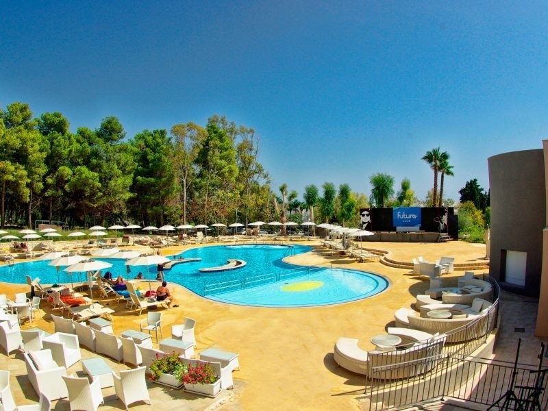 Hotel PIAGGE BIANCHE  se nachází na východním pobřeží Sicílie, nedaleko města Syracusy. Na prostorném pozemku nabízí svým klientům nespočet možností, jak strávit příjemnou dovolenou. K dispozici je recepce, bazén pro dospělé s dětskou částí a solární terasou, společná zahrada, společenská místnost, restaurace a bary a parkoviště. Klienti dále mohou využít rozsáhlé nabídky sportovišť a jiného volnočasového vyžití jako např. tenisové kurty, multifunkční hřiště, stolní tenis, plážový volejbal, jóga, petanque, animační programy pro děti, večerní vystoupení v amfiteátru atd. Dále hotel nabízí pro klienty s nejmenšími dětmi (0-3 let) Baby room s kuchyňským koutem, mikrovlnnou troubou, ohřívačem láhví, židličkami a základními potravinami.