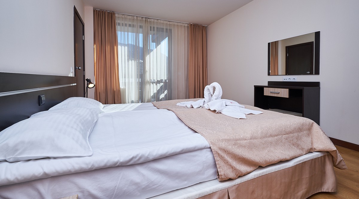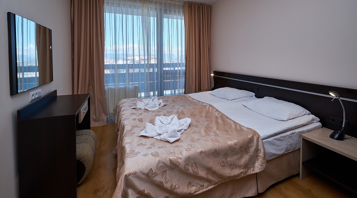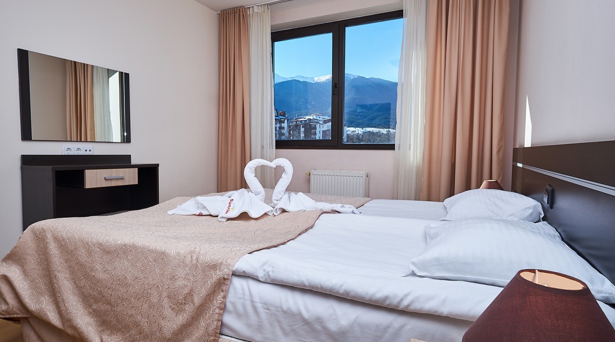 Hotel Sunrise**** se nachází 10 minut chůze od lyžařského střediska Bansko. Hotel disponuje recepcí, barem, restaurací, krytým vnitřním bazénem, wellness služby za poplatek.