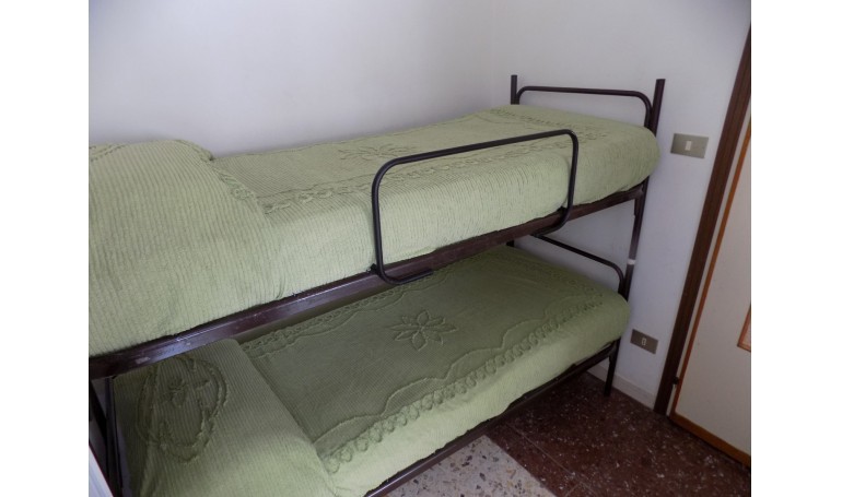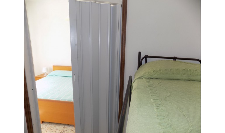 Apartmán BILO pro 4 osoby: ložnice s manželskou postelí, nika s patrovou postelí, obývací pokoj s gaučem a kuchyňským koutem.