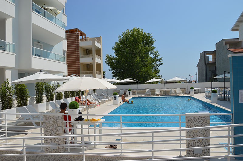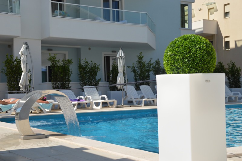 Moderní, prostorná, příjemná residence s bazénem, která byla otevřena v roce 2014, se nachází cca 100m od pláže a cca 1,5km od centra letoviska. Je součástí komplexu tvořeného menším hotelem a restaurací. Apartmány jsou umístěny v přízemí nebo v prvním patře. Jsou pěkně zařízené, vybaveny TV, pračkou a klimatizací a mají terasu se zahradním nábytkem.