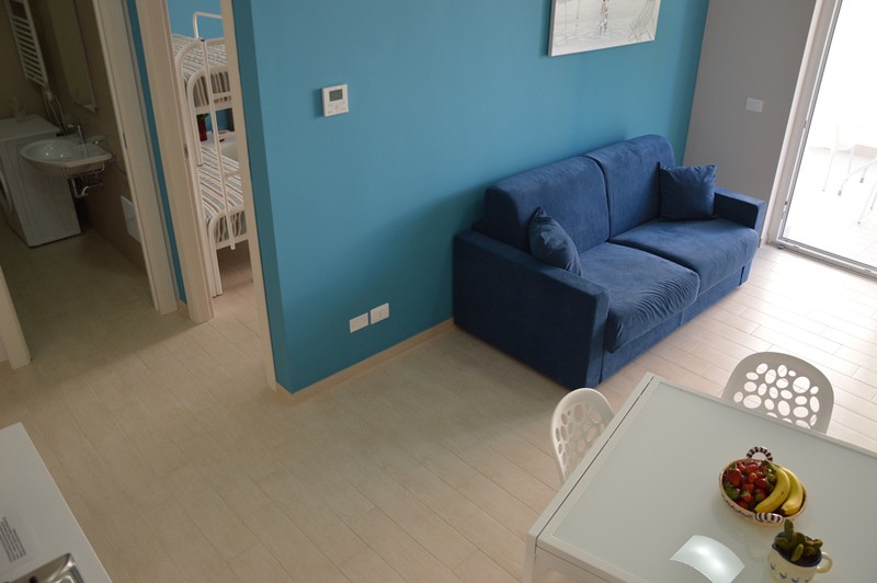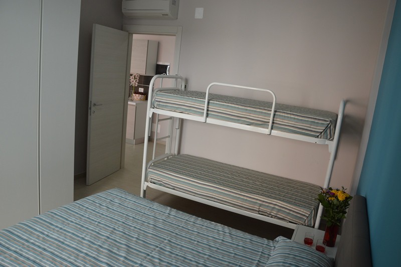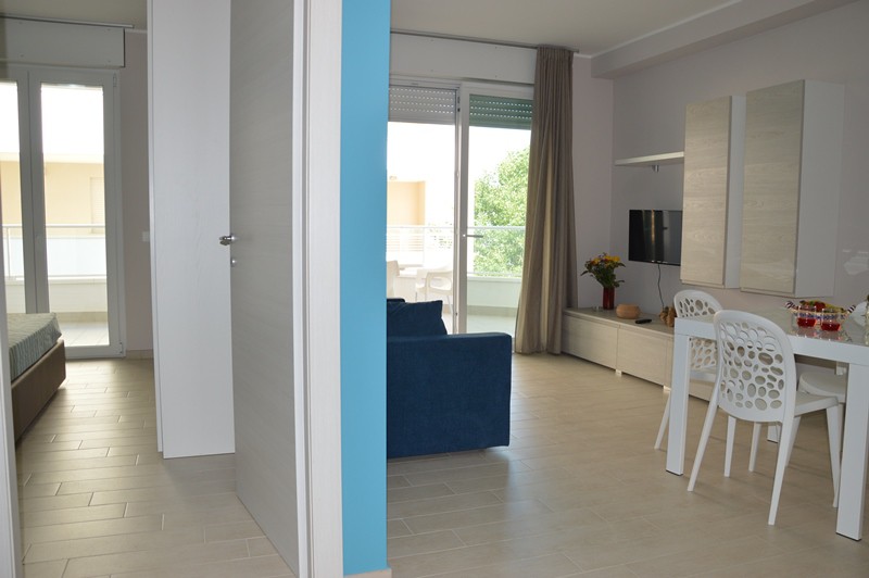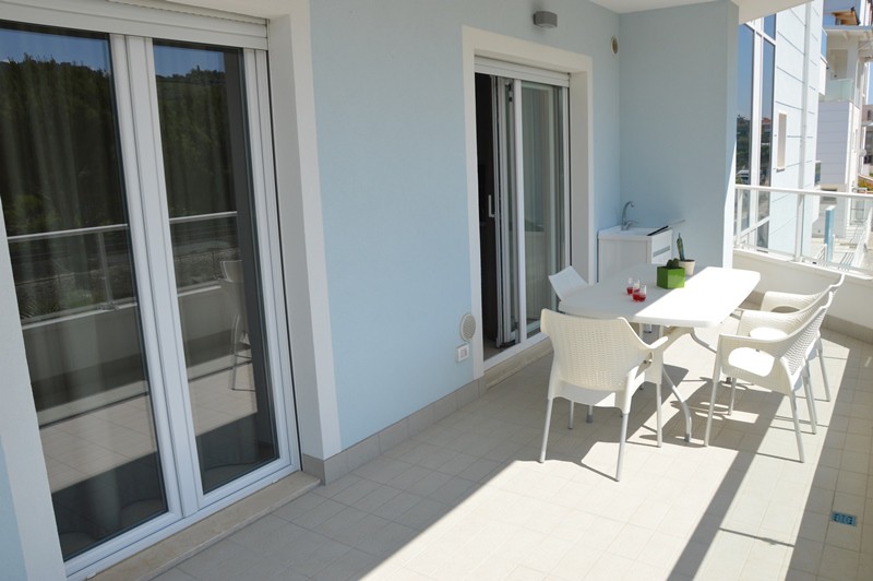 Apartmán BILO pro 4 osoby: dvoupokojový apartmán - obývací pokoj s kuchyňským koutem a rozkládacím dvoulůžkem, ložnice s manželskou postelí, vlastní sociální příslušenství, klimatizace, terasa. Lze přidat 5 lůžko na vyžádání za poplatek