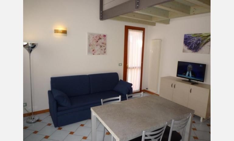 Apartmán TRILO pro 4 osoby: obývací pokoj s kuchyňským koutem, 1 dvoulůžkový pokoj, 1 ložnice se 2 samostatnými lůžky nebo palandou, koupelna se sprchou. Zahrada nebo terasa