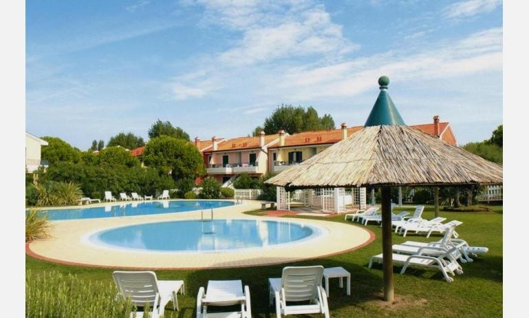 Oblíbená residence PORTO SOLE je složena ze tří identických samostatných budov, které leží na soukromém pozemku přímo u pláže a cca 800 m od obchodů a restaurací. Komplex nabízí bazén a dětský bazén, solární terasu a 1 parkovací místo na apartmán. Klientům je k dispozici společná prádelna (za poplatek). Apartmány jsou pěkně vybavené, mají vlastní sociální zařízení, trezor, TV, Wi-Fi (na vyžádání, za poplatek), klimatizaci (na vyžádání, za poplatek), venkovní krb, v přízemí zahrádku nebo v patře prostorný balkon.