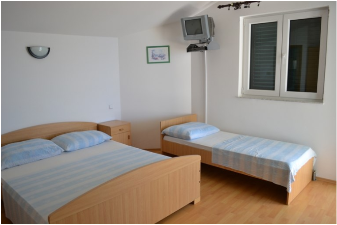 Studio pro 2+1 osobu: pokoj s manželským lůžkem + přistýlka, mini kuchyňský kout, koupelna/wc, balkon