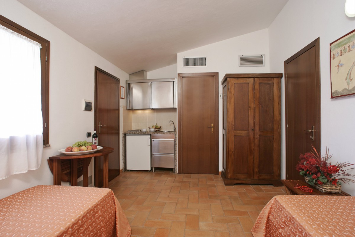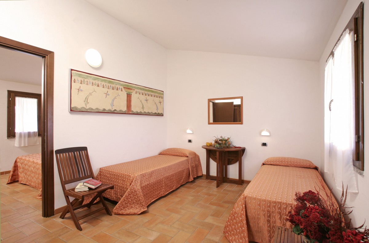 Bilo pro 4 osoby (Superior Vulci) se skládá z ložnice s manželskou postelí a obývacímístností s kuchyňským koutem a dvěma samostatnými lůžky. Je umístěné v jednopodlažních vilkách v rozlehlé zahradě a vybaveno dvěmasociálními zařízeními, klimatizací a dvěma verandami