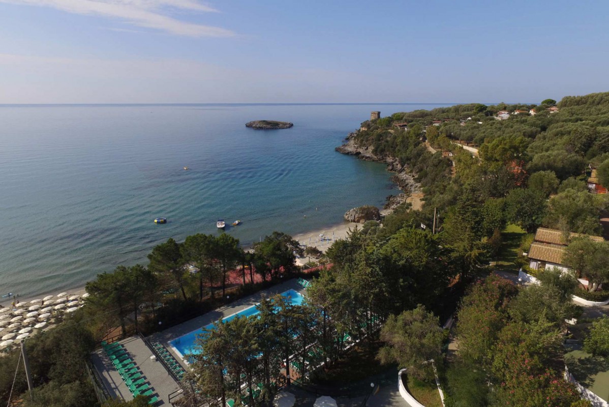 Villaggio delle Sirene je moderní prázdninové středisko, které se nachází v krásném prostředí zahrady se středomořskou vegetací a blízké romantické pláže jsou omývány průzračným Tyrhénským mořem . Svou polohou blízko k pláži , sportovním vybavením a bazénem je villaggio vhodné nejen pro rodiny, ale také pro skupiny se sportovním zaměřením. Centrum městečka Marina di Camerota je vzdáleno asi 1 km po silnici nebo cca 500 m po pláži.Má krásné historické centrum, tak typické pro jižní Itálii, které láká turisty svými úzkými uličkami plnými obchůdků , cukráren, pizzerií a místních barů, Oblast je vhodná pro potápění..