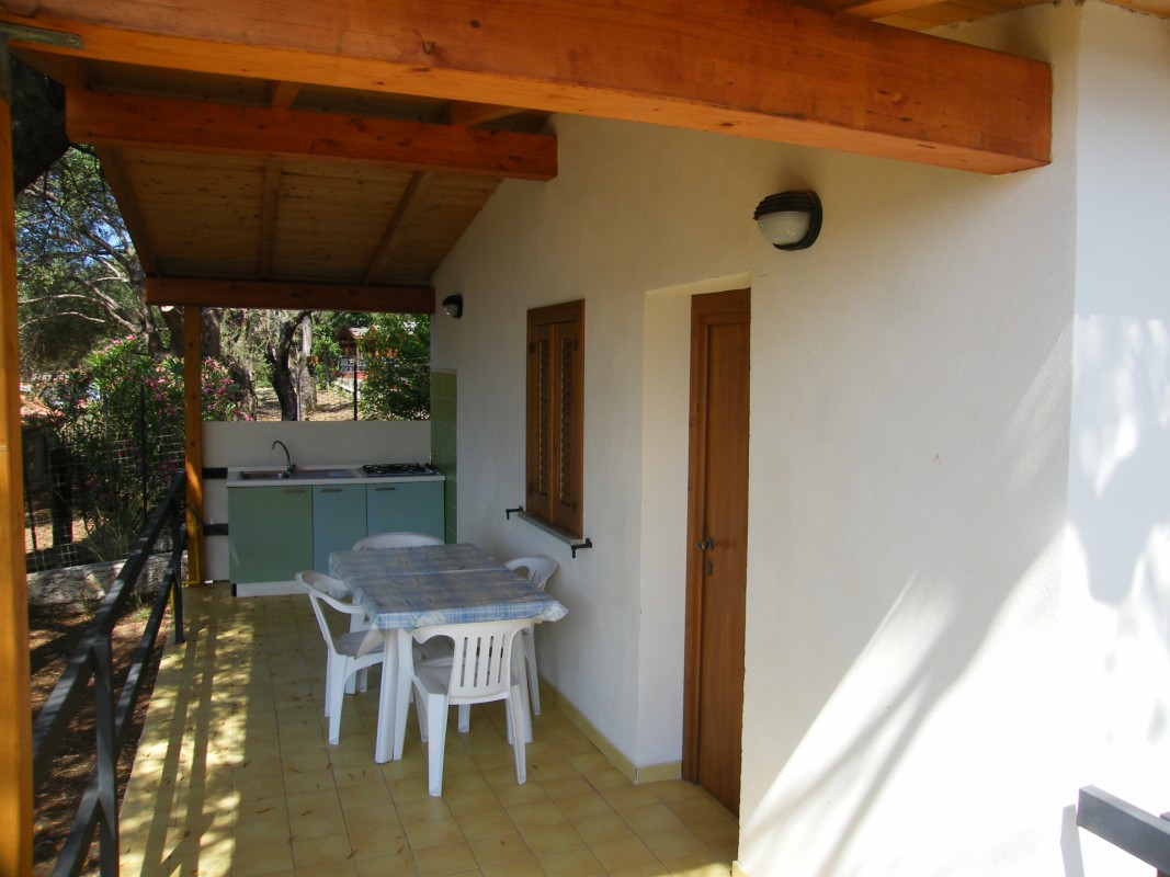 zděný bungalov pro 4 osoby - pokoj s manželskou postelí, pokoj se 2 lůžky, sociální zařízení, kuchyňský kout na kryté terase, ventilátor v obou pokojích