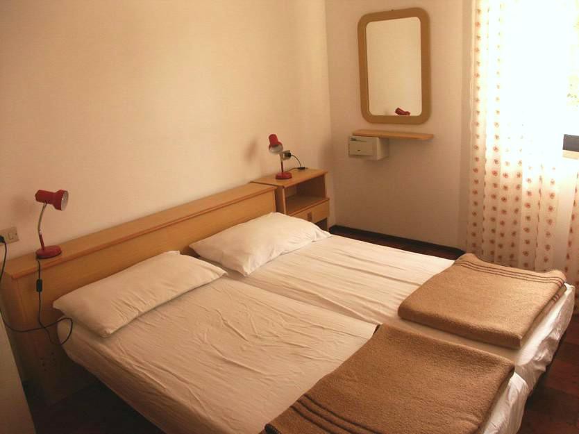 Apartmán TRILO pro 6 osob: ložnice s manželskou postelí, ložnice se dvěma lůžky nebo patrovou postelí, obývací pokoj s rozkládacím dvougaučem (pro děti do 12 let) a kuchyňským koutem.