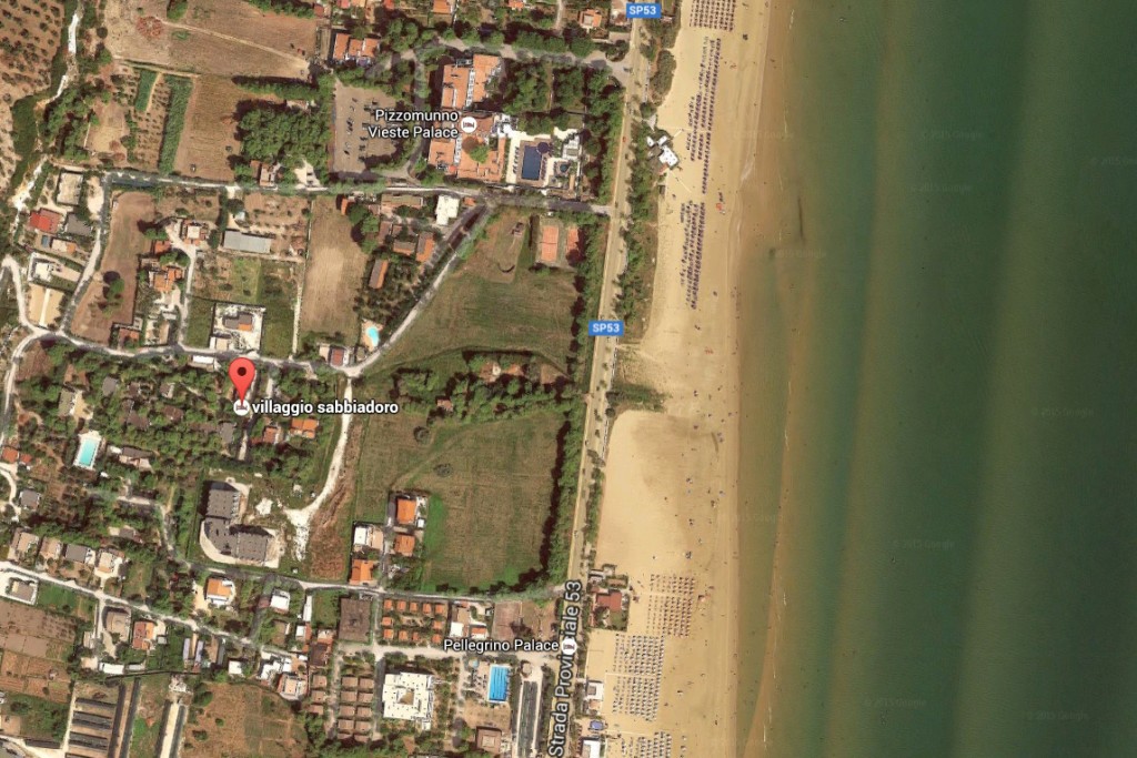 Villaggio SABBIADORO leží na klidném místě, u pláže Castello, cca 1 km od centra Vieste. Celý komplex je obklopen oleandry, olivovníky, piniemi a eukalypty. Klientům je k dispozici bazén (v provozu 09.06. - 15.09.), solární terasa, bar, Wi-Fi, dětské hřiště, venkovní sprchy s teplou vodou, barbecue, pračka (na žetony) a parkoviště (1 místo na apartmán).